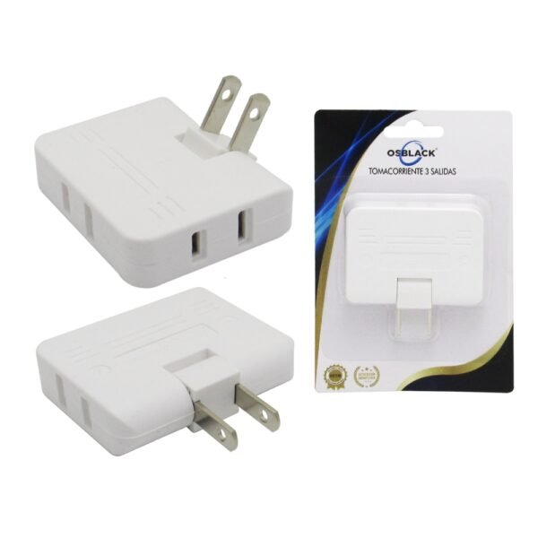 TOMACORRIENTE CON CLAVIJA 3 SALIDAS ESCUALIZABLE BLANCO U67 ESCUALIZABLE BLANCO